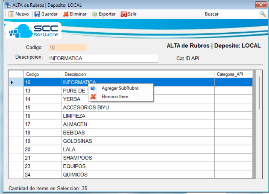 También podrá agregar una 3era Categoría de Rubros desde la pantalla de SubRubros, haciendo clic con el botón derecho del mouse 🖱️ sobre el subRubro que desee.
