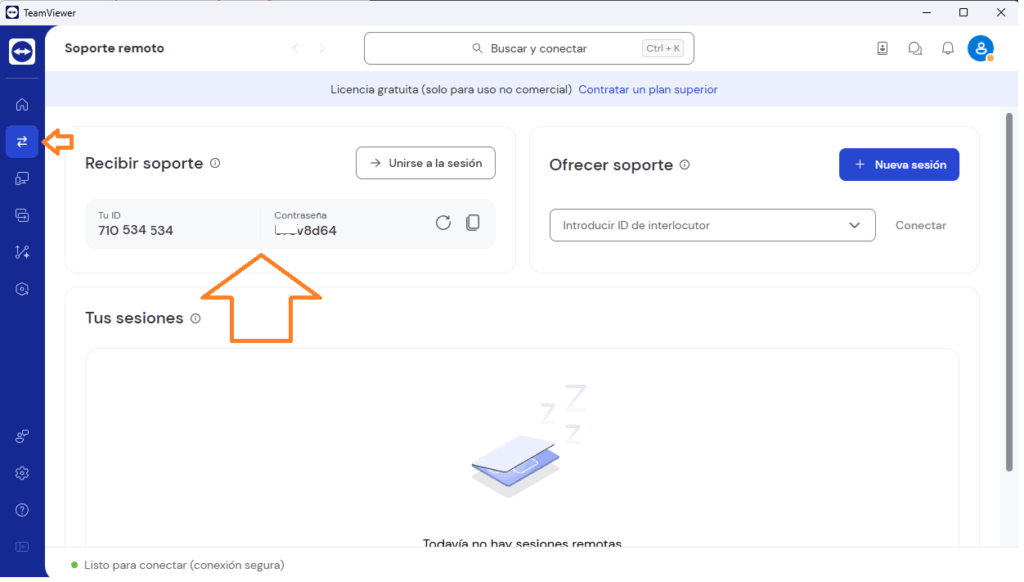 Una vez que el sistema abrió, enviarnos el ID y la Contraseña, de esta forma nos dará acceso a su equipo para poder efectuar las tareas correspondientes.