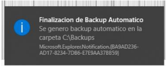 – El sistema va a informar mediante un cartel que el Backups se efectuó correctamente.