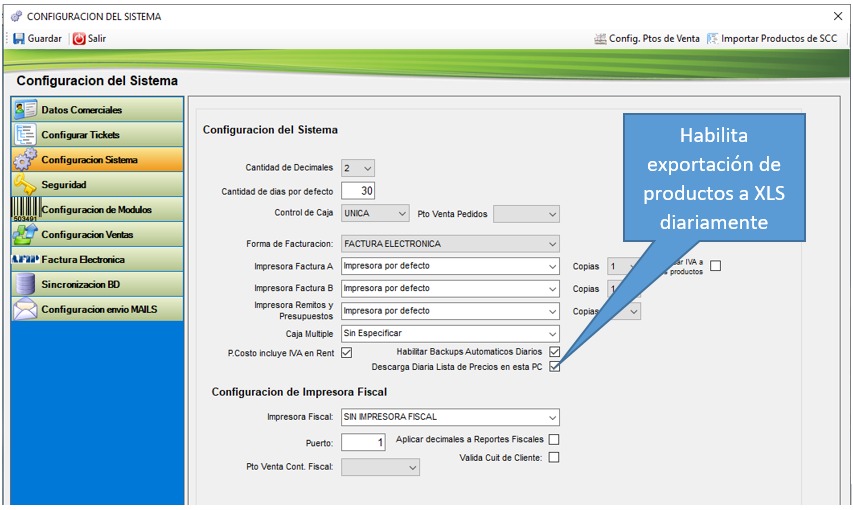 Desde la solapa de “Configuración de Sistema” deberá habilitar la opción de «descarga diaria de lista de precios en esta PC» y presionar el botón “Guardar”.