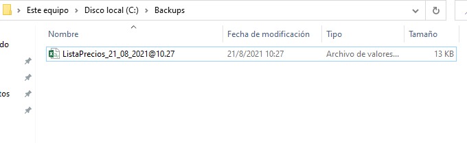 De esta forma, el sistema generará todos los días al abrir el sistema por primera vez un listado automatico de la lista de precios, descargándolo en su disco local en la siguiente unidad: