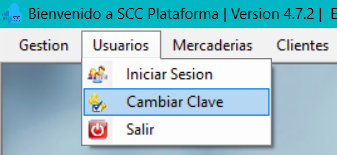 📁 Menú → 🧑💼 Usuarios → 🔁 Cambiar Clave
